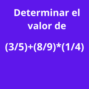 Ejercicio 1 suma de fracciones : Determinar el valor de (3/5)+(8/9)*(1/4)