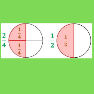 - Fracciones equivalentes: Las fracciones son equivalentes si representan la misma parte. Ejemplo: ¼ y 2/8.